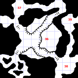 | 34 | This area has a pleasant, earthy smell. Encounter: Snakes, Cobra (4) Treasure: As per monster type. | 35 | There is water dripping here. Treasure: 300sp, 50gp. | 36 | Encounter: Beetles, Fire (3) Treasure: None. |