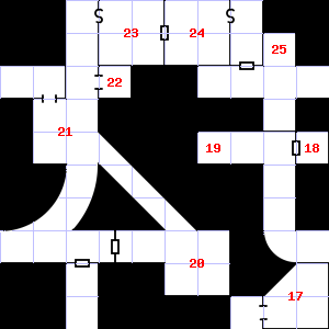 | 19 | There is a trickle of water here. | 20 | Treasure: 100sp. Trap: Flash of light: Save vs. Spells or be blinded for 1d8 turns (1d8x10 minutes). | 21 | The air here is very hot. There are dry leaves and twigs scattered here. |