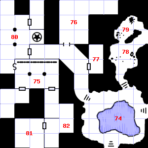 | 79 | A slight updraft blows through this area. Encounter: Green Slimes (3) Treasure: None. | 80 | Encounter: Killer Bees (10) Treasure: None. | 81 | There is water dripping here. |