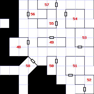 | 55 | A haze of smoke hangs in the air. Guano covers this area. Encounter: Sprites (15) Treasure: None. | 56 | The air here is very hot. This area is covered in cobwebs. | 57 | Encounter: Green Slimes (1) Treasure: As per monster type. |