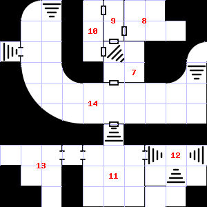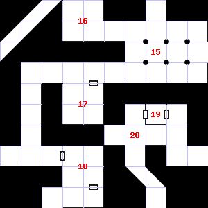 | 28 | The air here is very cold. This area smells faintly of urine. Treasure: 500sp, 5 gems. | 29 | A slight, damp breeze blows through this area. This area smells faintly of urine. | 30 | This area is covered in rubble and dirt. Encounter: Halflings (7) Treasure: None. |