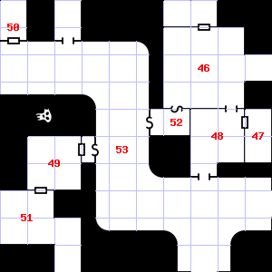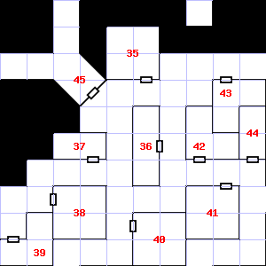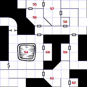 | 52 | This area smells faintly of urine. Treasure: 600sp. | 53 | There is a mold growing here. | 54 | Treasure: 500sp. |
