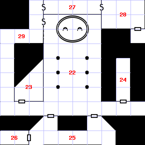 | 19 | There are cracks in the wall here. Encounter: Snakes, Cobra (6) Treasure: As per monster type. | 20 | 21 | ||