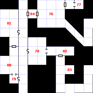 | 82 | The wall here is damp. | 83 | The hilt of a broken dagger is lying here. | 84 | A strong, gusting wind blows through this area. This area has a stale, fetid smell. |