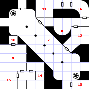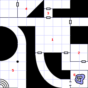 | 16 | The air here smells of smoke. It is foggy here, making it difficult to see. This area is covered in rubble and dirt. Encounter: Green Slimes (1) Treasure: None. | 17 | There is a putrid smell coming from something nearby. Treasure: 300sp. Trap: Illusion of monsters: Green Slimes (3) | 18 | |