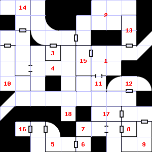 | 10 | 11 | The air here is very hot. A metallic smell assails your nostrils. This area is covered in cobwebs. | 12 | This area smells faintly of urine. Fog gathers and swirls on the floor, concealing it. | |