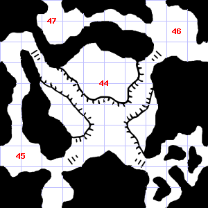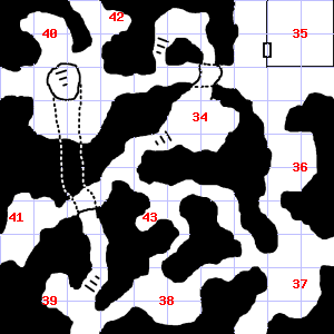 | 43 | Encounter: Green Slimes (1) Treasure: None. | 44 | This area smells faintly of manure. Encounter: Wolves (4) Treasure: As per monster type. | 45 | A slight, damp breeze blows through this area. Encounter: Goblins (6) Treasure: As per monster type. |