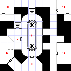 | 7 | A strong, moaning wind blows through this area. The air here smells of smoke. | 8 | The air here is very hot. Guano covers this area. Encounter: Sprites (12) Treasure: None. | 9 | |