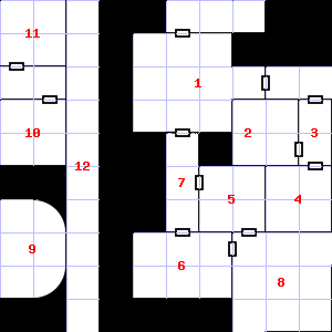 | 10 | It is foggy here, making it difficult to see. There is water dripping here. | 11 | 12 | This area is covered in cobwebs. | |
