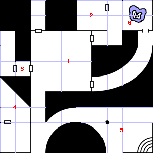 | 7 | It is foggy here, making it difficult to see. There are dry leaves and twigs scattered here. Encounter: Stirges (5) Treasure: As per monster type. | 8 | It is foggy here, making it difficult to see. There is water dripping here. | 9 | There is a broken pole here. Encounter: Spiders, Crab (2) Treasure: As per monster type. |