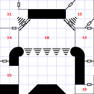 | 10 | Treasure: 100sp, 60gp. Trap: Spring-fired darts: 1-6 darts hit for 1-4 points of damage each. | 11 | Treasure: 600sp. | 12 | The air here is very hot. This area smells faintly of manure. |