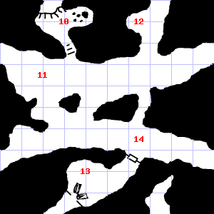 | 10 | The air here is very cold. This area has a pleasant, earthy smell. | 11 | Treasure: 200sp, 20gp. | 12 | It is foggy here, making it difficult to see. There is a pile of dung here. Encounter: Killer Bees (3) Treasure: As per monster type. |