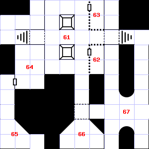 | 61 | 62 | A haze of smoke hangs in the air. Treasure: 500sp. | 63 | ||