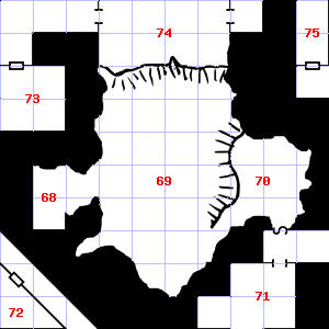 | 64 | A cold air current blows through this area. This area smells of rotting vegetation. Encounter: Lizards, Gecko (1) Treasure: As per monster type. | 65 | This area smells faintly of manure. | 66 | It is foggy here, making it difficult to see. There are several small stones here. Encounter: Goblins (5) Treasure: None. |
