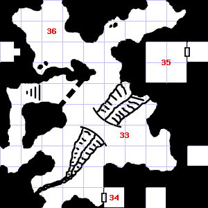 | 34 | 35 | 36 | Trap: Ceiling Block falls: Save vs. turn to Stone or take 1d10 points of damage. | ||