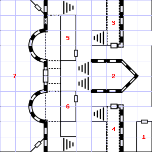 | 4 | 5 | This area smells faintly of urine. There is a mold growing here. Encounter: Snakes, Cobra (2) Treasure: As per monster type. | 6 | ||