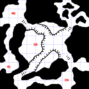 | 43 | There are several small stones here. | 44 | This area has a pleasant, earthy smell. There are dry leaves and twigs scattered here. Encounter: Shrews, Giant (9) Treasure: None. | 45 | There is a large puddle of water here. Encounter: Gnomes (3) Treasure: As per monster type. |