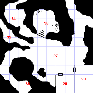 | 25 | Encounter: Gnomes (4) Treasure: As per monster type. | 26 | This area is covered in cobwebs. | 27 | A cold air current blows through this area. |