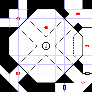 | 43 | It is foggy here, making it difficult to see. The wall here is damp. Trap: Fog: Looks like poison gas, but harmless. | 44 | A strong wind blows through this area. The ceiling here is damp. Trap: Chute: No damage, but slide to the next level down (ignore if there is no lower level). | 45 | There are cracks in the ceiling here. |