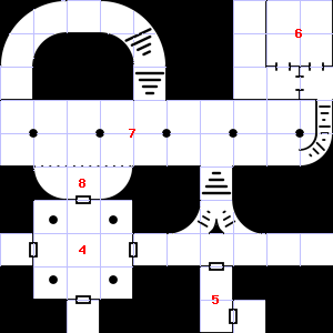 | 49 | It is foggy here, making it difficult to see. There are food scraps scattered here. | 50 | There are cracks in the floor here. Encounter: Sprites (9) Treasure: None. | 51 | The air here is very hot. |