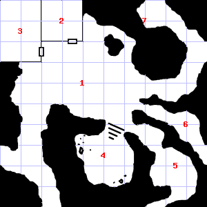 | 19 | This area has a pleasant, earthy smell. There is a broken arrow here. | 20 | Fog gathers and swirls on the floor, concealing it. There is a pile of dung here. Treasure: 600sp. | 21 | A slight breeze blows through this area. |