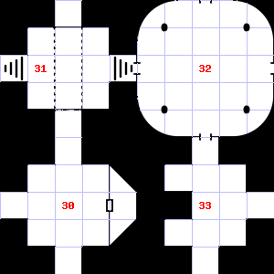 | 28 | 29 | A strong wind blows through this area. This area has a pleasant, earthy smell. There is a corroded chain here. | 30 | This area smells faintly of manure. It is foggy here, making it difficult to see. Teeth and fangs are scattered here. | |