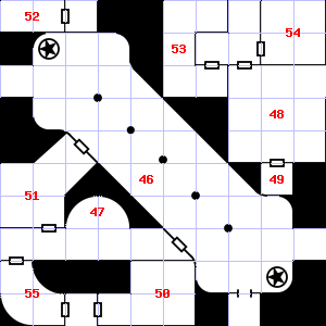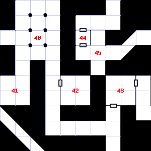| 40 | A strong downdraft blows through this area. Encounter: Dwarves (6) Treasure: As per monster type. | 41 | Trap: Chute: No damage, but slide to the next level down (ignore if there is no lower level). | 42 | |