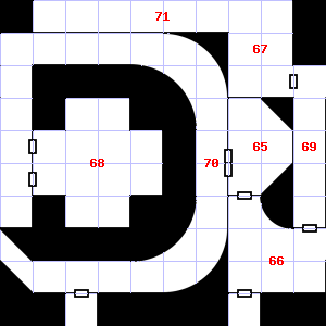 | 67 | A strong, gusting wind blows through this area. Trap: 10' Pit: 1d6 points of damage if you fall in. | 68 | This area is covered in cobwebs. | 69 | This area has a stale, fetid smell. This area is covered in cobwebs. |