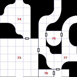 | 73 | This area is covered in rubble and dirt. Treasure: 200sp. | 74 | Fog gathers and swirls on the floor, concealing it. This area is covered in cobwebs. Encounter: Green Slimes (1) Treasure: As per monster type. | 75 | A slight, damp breeze blows through this area. A chlorine-like smell assails your nostrils. A haze of smoke hangs in the air. |